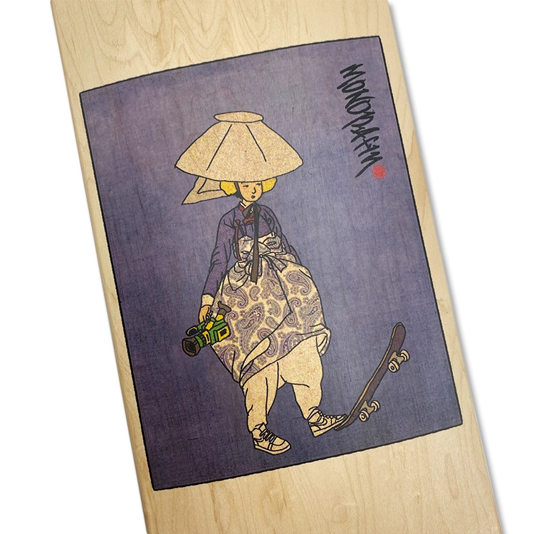 sinyunbok woman with vx1000 skate deck - indigo